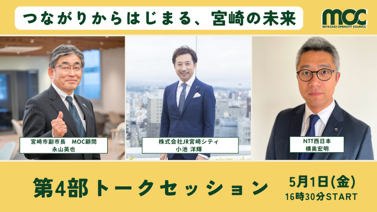 登壇:宮崎市副市長・MOC顧問 永山英也氏 × 株式会社JR宮崎シティ 小池洋輝氏× NTT西日本 横奥宏明氏