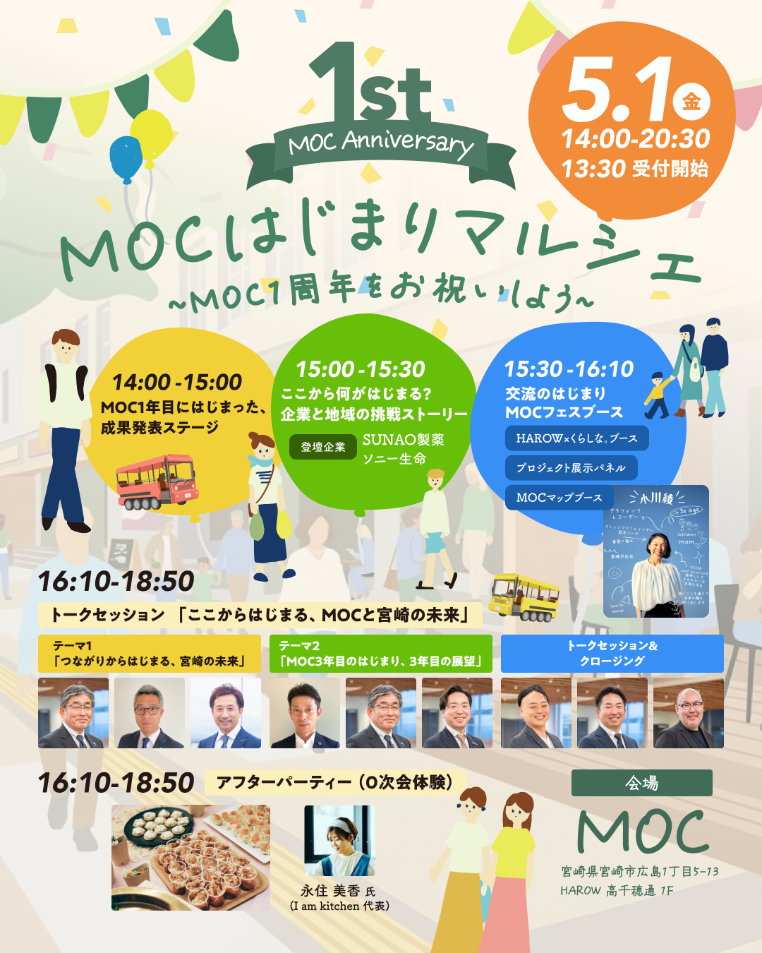 周年を節目に開催する「MOCはじまりマルシェ〜MOC1周年をお祝いしよう〜」は、MOCの1年間の歩みを振り返るとともに、これからの挑戦やつながりの“はじまり”を生み出す記念イベントです。