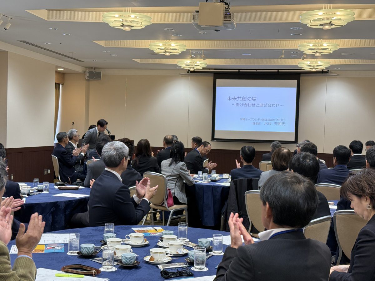 米良理事長からは「未来共創の場~掛け合わせと混ぜ合わせ~」と題し、MOCの事業の紹介に加え、宮崎経済の今後にどう貢献するか、などについて講演を行いました。