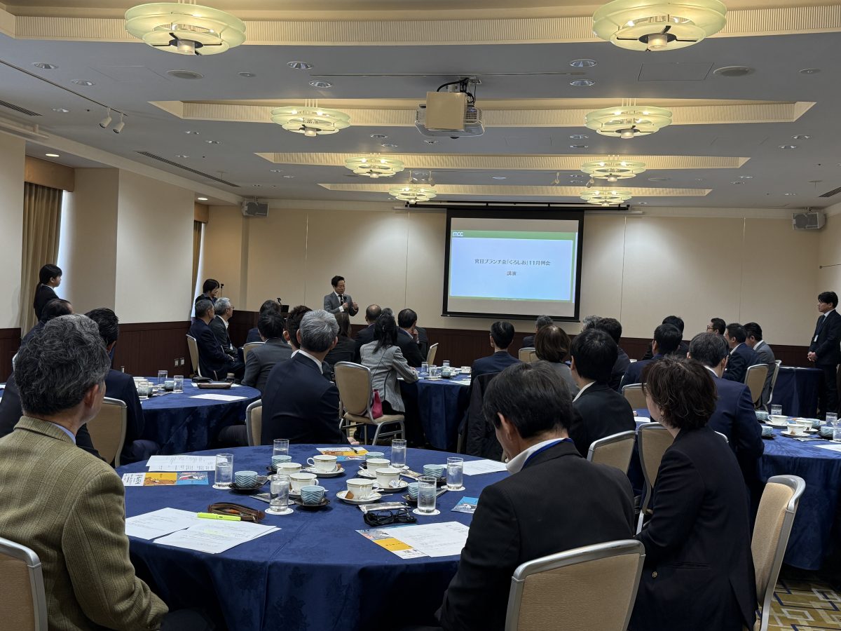 11月28日、宮崎日日新聞社主催宮日ブランチ会「くろしお」の11月例会に米良充朝理事長が講演しました。宮日ブランチかいは宮崎県外に本社がある大手企業の支店長・支社長等で構成される団体です。