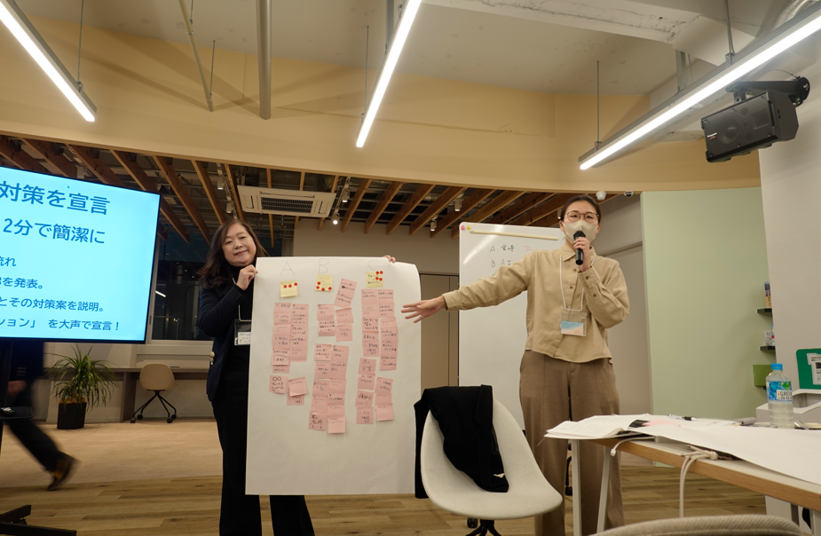 2. 【グループワーク】課題の整理と優先順位の決定(KJ法) グループ内で付箋を分類して「テーマ(見出し)」をつけ、全員で投票を行って、明日から解決に取り組むべき「重点課題トップ3」を絞り込みます。