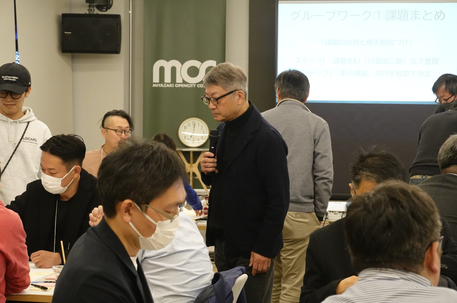 人口減少に伴う市場縮小や人材確保難など、経営環境が転換期を迎える中、「発想の転換による持続可能な経営モデルの再構築」をテーマに、地域企業の経営課題解決に向け第一歩となるセミナーを開催しました。参加されたのは、会社の経営者や個人事業主など25名。宮崎でビジネスを展開していく上での活路はどこにあるのか、熱心に講演・ワークショップに取り組んでいました。