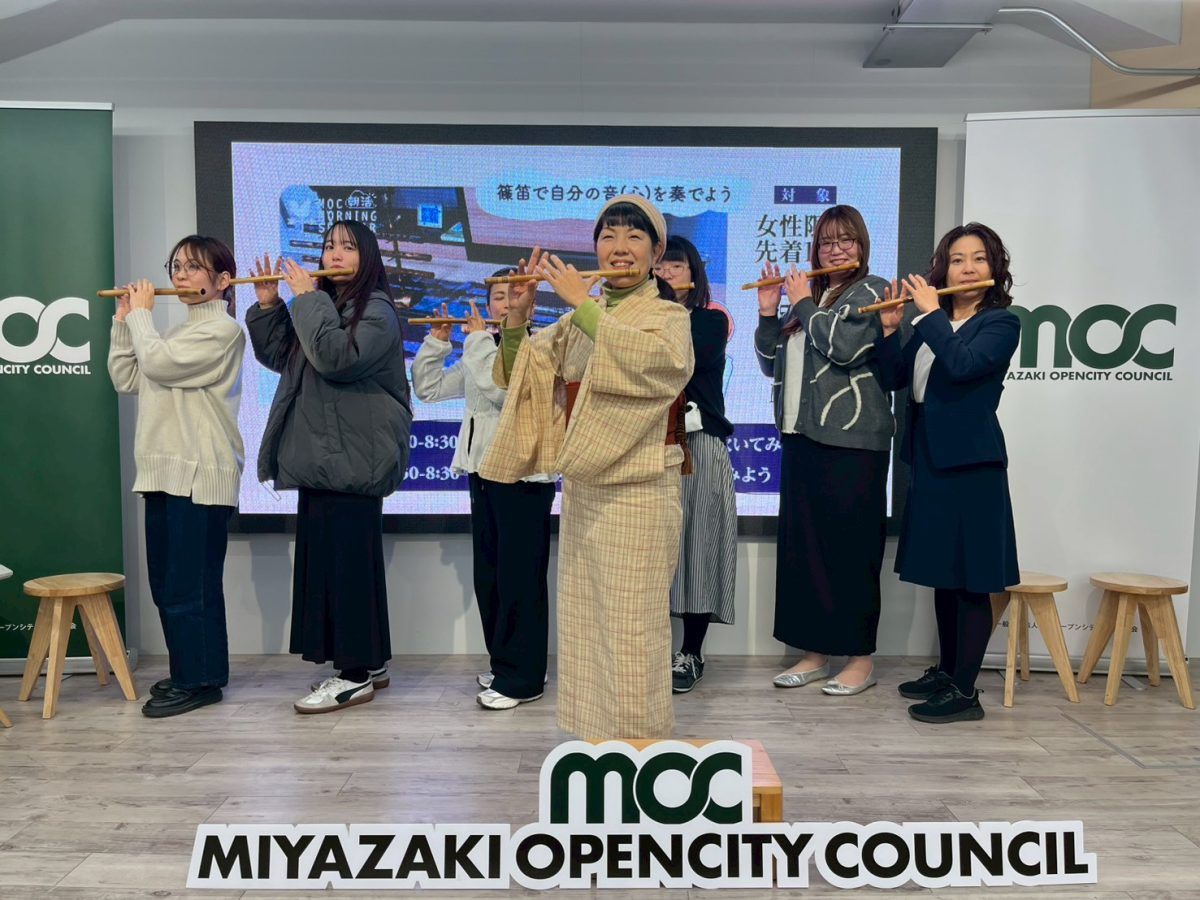 1月2回目のセミナーも様々な業種とコラボし、篠笛(しのぶえ)の魅力を広めている篠笛奏者の物部 聖子(ものべ さとこ)さんを講師に迎え、篠笛の基本と「息を整えること」の大切さを学ぶ時間となりました。物部さんは、小学校の時から引っ込み思案という悩みがありましたが、篠笛と出会うことで新たな世界が広がっていったそうです。その経験を経ることで、より多くの方へ篠笛の世界を知っていただきココロとカラダをリラックスするツールとしても活用いただきたいと演奏やワークショップなど活動の幅を広げています。