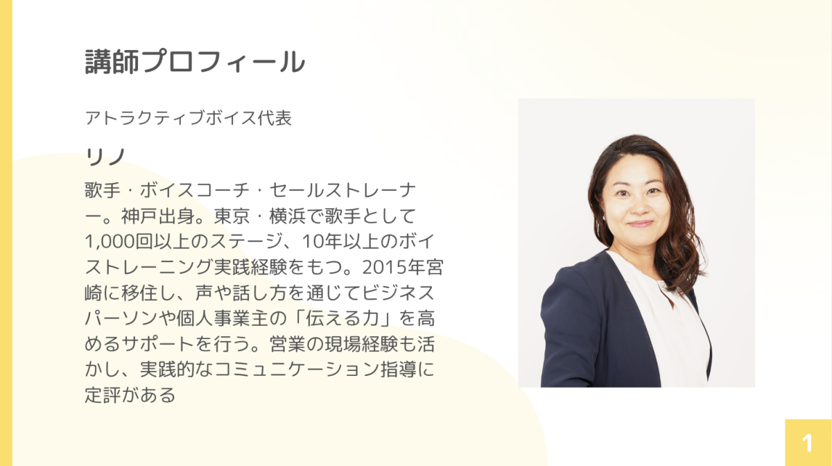 本イベントは、「人前で話すとき、もっと伝わる声になりたい」「滑舌や話し方に、なんとなく苦手意識がある」そんな声をきっかけに企画された、学び+交流が1時間で完結するクイックセミナーです。